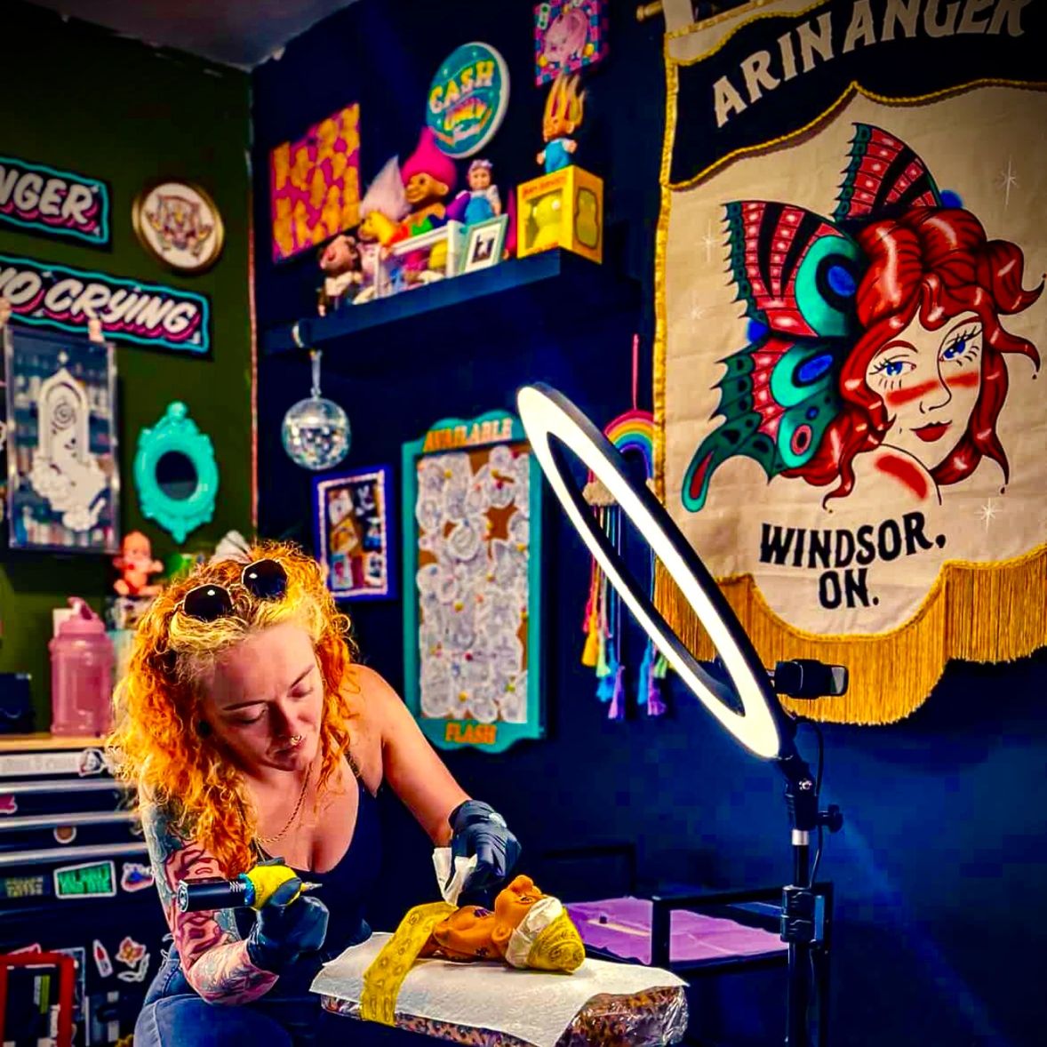 Arin Anger does traditional tattoos the way troublemakers follow rules — technically. Bold lines behave, colors don’t, and every piece tips its hat to the classics before sneaking out past curfew. Think old-school charm with a neon streak and just enough attitude to wink at you from across the room.